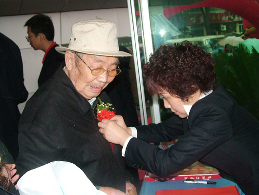为老校友佩带鲜花