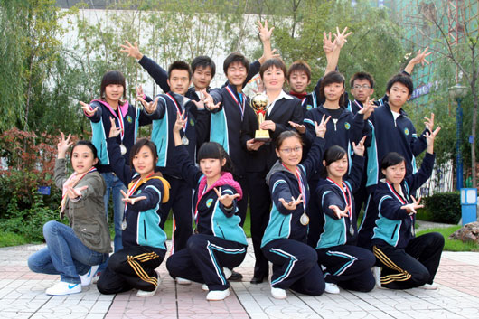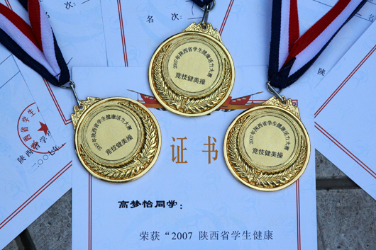 我校健美操队在2007年陕西省学生活力大赛中再次取得了:国际年龄二组:三人操(高三、七班刘鑫,高三、十班赵小桐,高三、二斑周俊)第一名;混合双人操(高三、十一班郭明磊、邢远)第二;六人操名(高三、十班赵小桐、高三、十一班高梦怡、高三、十二班王海钰、高二、五班凌晴、高一、七班徐云倩、高一、十班张照玉)第二名;男子单人操(高三、七班刘鑫,高一、三班徐帅)第二、第三名;女子单人操(高三、十一班高梦怡)第三名;健康街舞黄金级规定套路、自编套路(高三、十一班陈熊婉君、高三、十二班王海钰、姚新华、高二、三班张博轩)第二名,及团体总分第二名的好成绩。