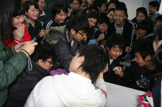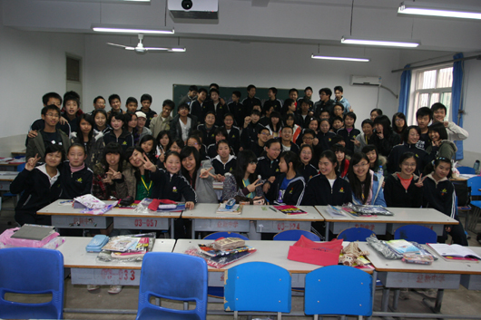 2008年3月20日上午,香港汇基书院师生一行30多人到我校进行文化交流活动.汇基书院的同学先参观了我校幽雅的环境和现代化的教学设施,然后与我校初三年级的同学一起上数学课,香港的师生与我校同学分享了他们此次西安之行的收获和感悟,并与我校同学进行了多方面的交流.