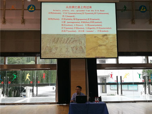 卢教授的报告主题为《“一带一路”倡议与发展机遇》。通过平和的语言、生活化的事例,向同学们阐释丝绸之路是贸易往来之路、是文化和宗教沟通之路、是东西方贯通之路、是文明交融和技术传播之路。