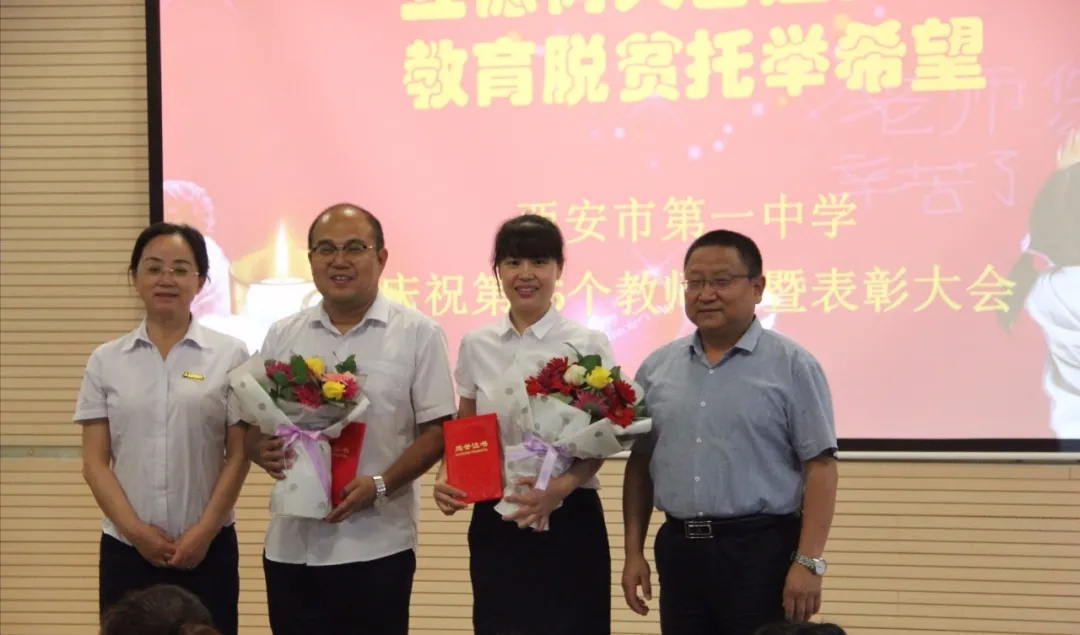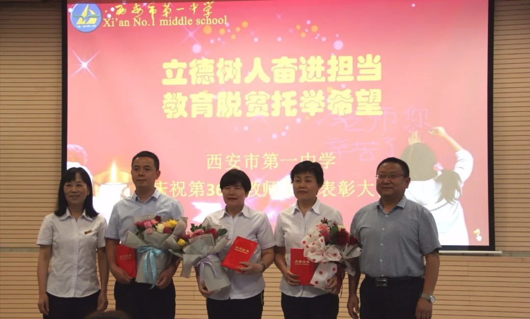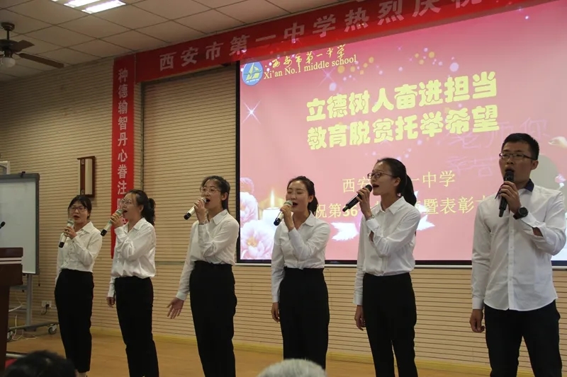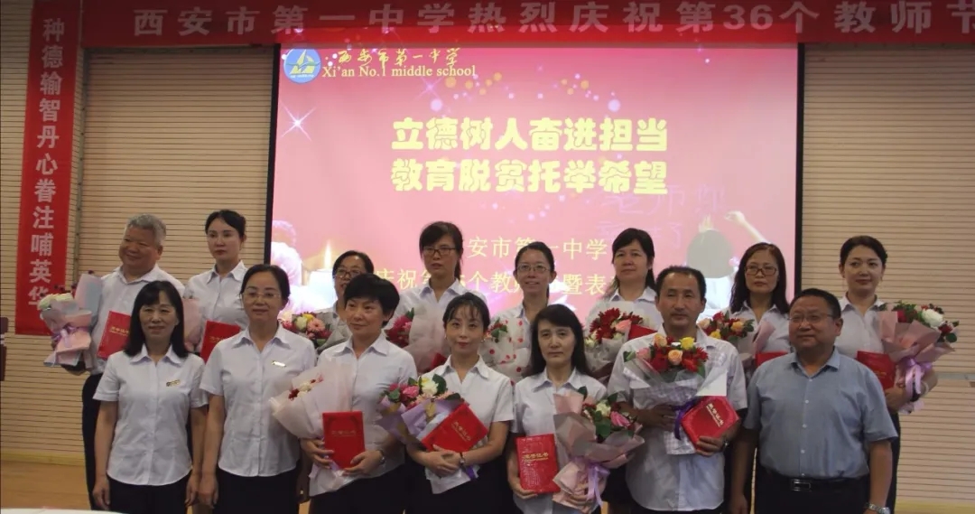 下午,在校报告厅举行了以“立德树人奋进担当,教育脱贫托举希望”为主题的庆祝第36个教师节暨表彰大会。全体教职工和学生代表欢聚一堂,共同庆祝自己的节日。表彰大会在国歌声中拉开帷幕。
