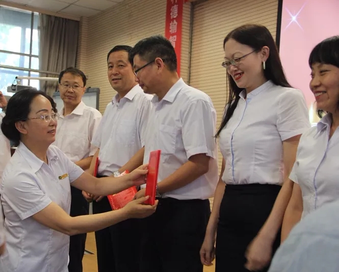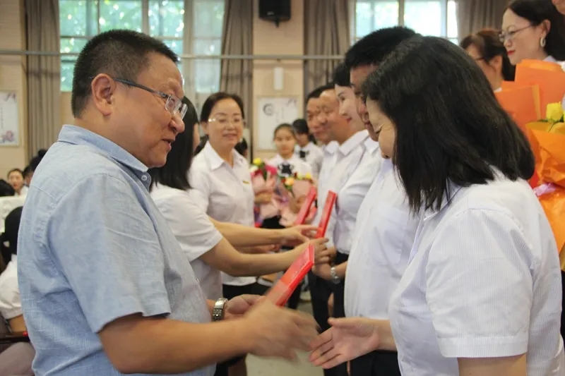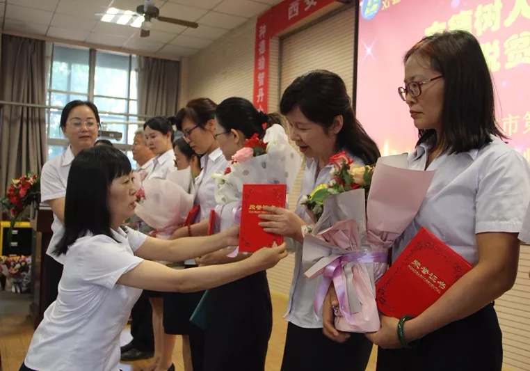 接着,陈丽萍副校长宣读了我校2019-2020学年度优秀班主任、优秀教师及先进教育工作者的表彰决定,通报了区、市级个人荣誉获得者名单;曾健副校长宣读了我校2019-2020学年度先进党支部、优秀党务工作者和优秀共产党员的表彰决定,通报了党组织建设及工会工作方面个人荣誉获得者名单。王瑾、张平乐、雷香兰、屈胜利等41位老师受到表彰。校领导为学校发展做出贡献的获奖教师颁发了荣誉证书,并用鲜花感谢他们一年来的辛勤工作!