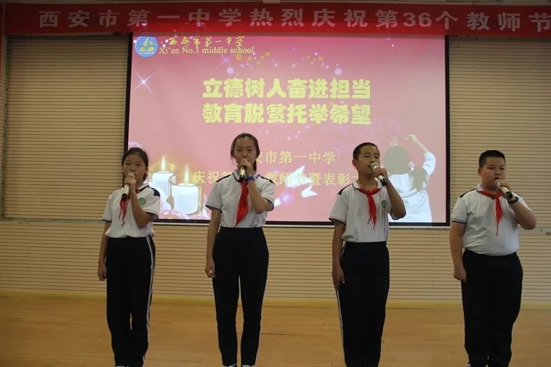 首先,由学生代表饱含热情地为全体教师朗诵了《爱的赞歌》,向辛勤的园丁们献礼感恩。