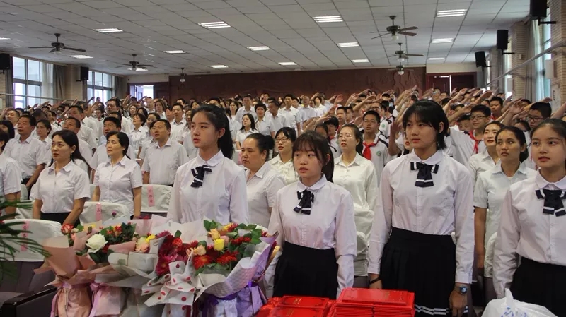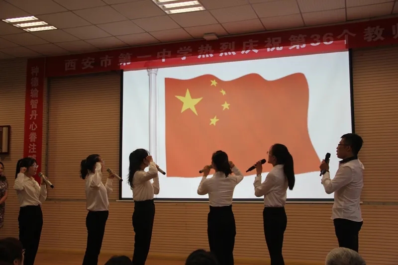 最震撼的是新入职的六位教师激情演唱《一中的明天更美好》以及他们面对国旗庄严宣誓:我愿做一名光荣的人民教师,履行教师光荣使命、争当教书育人楷模、乐做终身学习典范、筑就民族复兴中国梦!